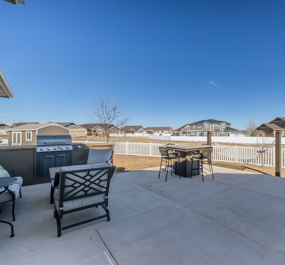 The exterior is incredibly inviting, featuring a large backyard with a water feature, a covered front porch, and a three-car garage. This beautifully appointed home is a must-see!